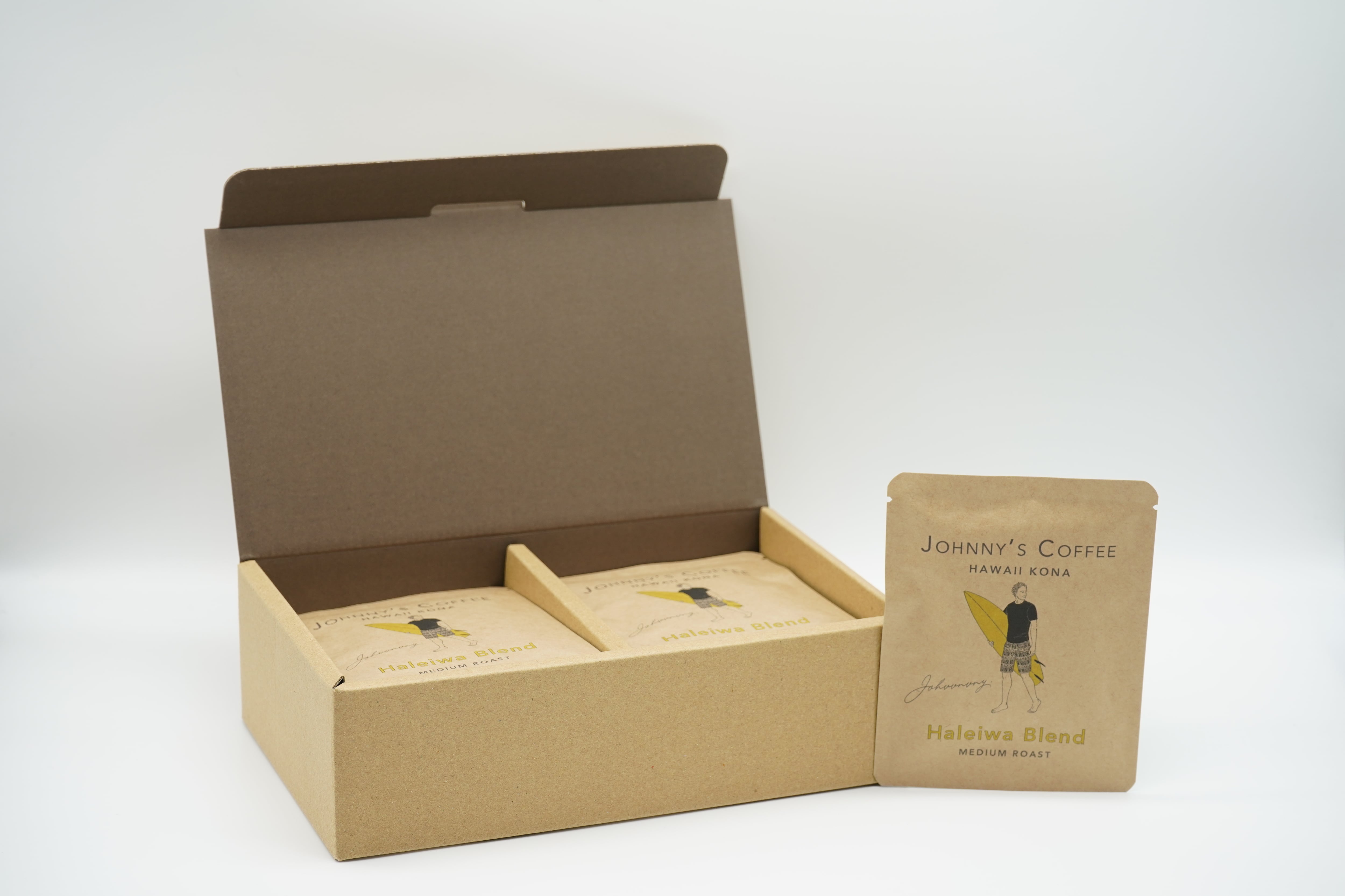 ハレイワブレンドのドリップバッグがギフトボックスに12個入っています
